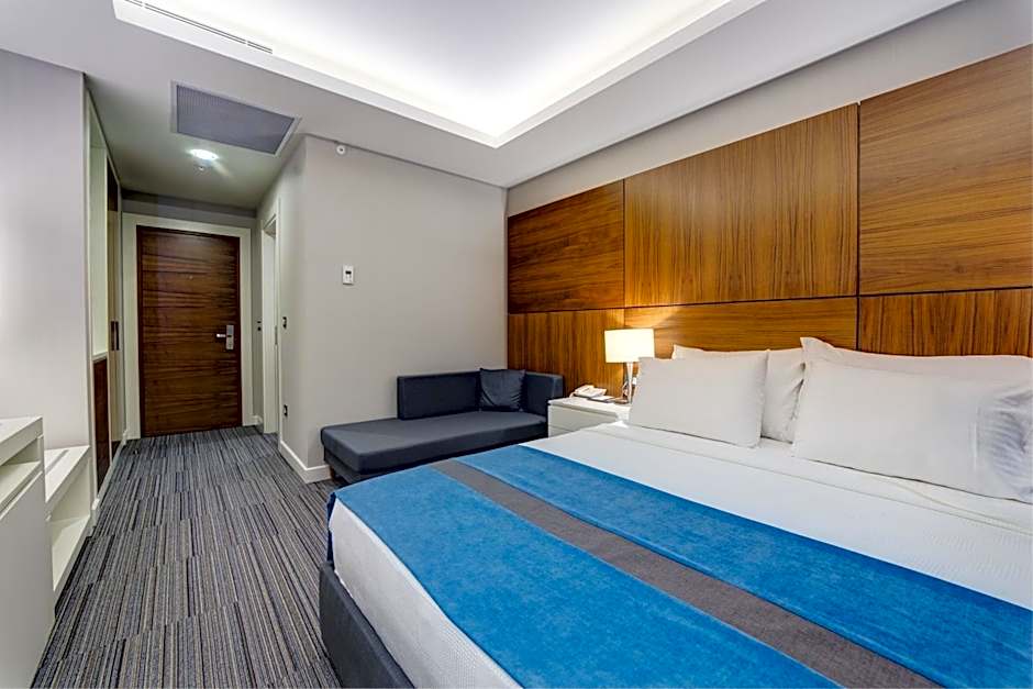 This double room features a sauna. Featuring free toiletries and bathrobes, this double room includes a private bathroom with a walk-in shower, a bidet and a hairdryer. The air-conditioned double room features a flat-screen TV with satellite channels, soundproof walls, a mini-bar, a tea and coffee maker as well as city views.